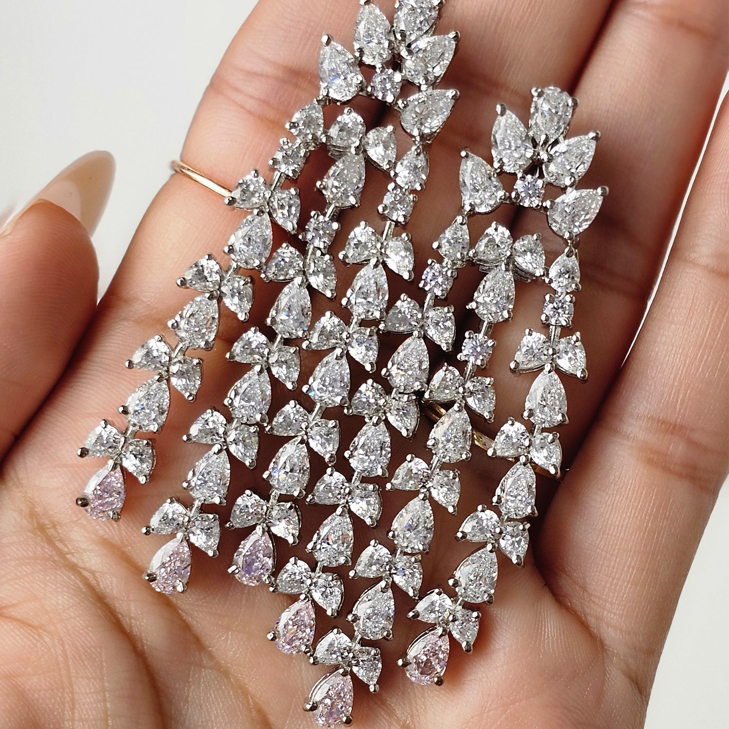 White and Pink Swarovski Chandelier Earrings